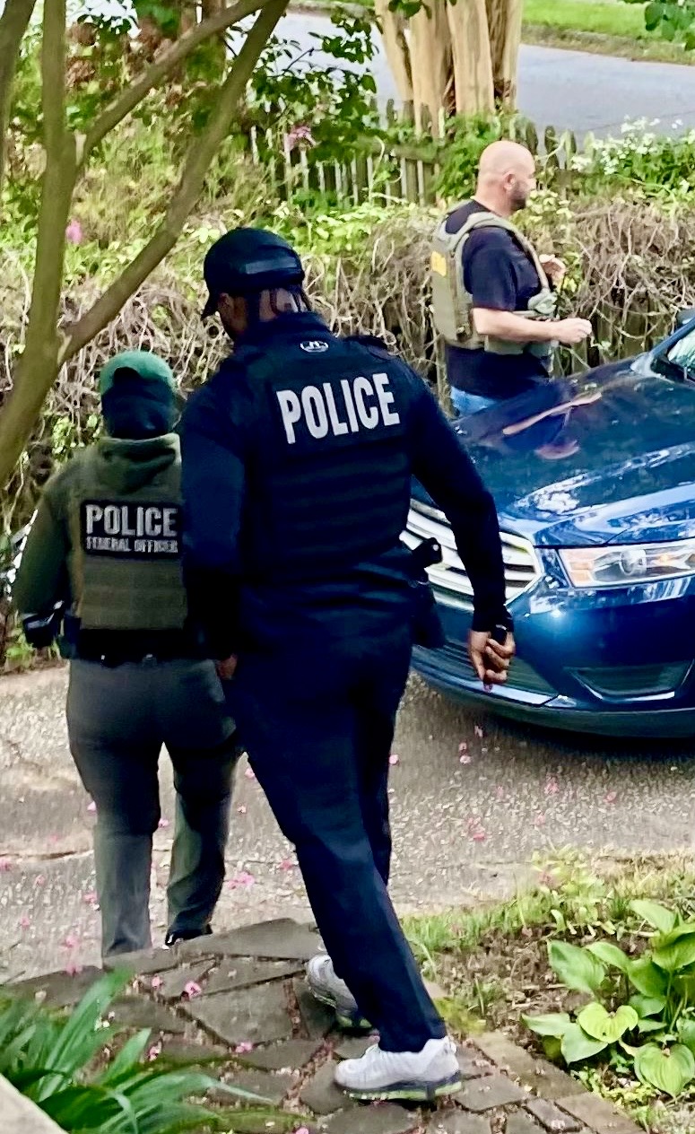 A friend of mine, a retired pastor who houses asylum seekers, shared a harrowing example. One housemate, with a pending asylum application, received an ankle monitor referral. These devices—often called “grilletes,” or shackles in Spanish—effectively turned her home into a de facto ICE processing center. A week later, on an early weekend morning, ICE agents arrived. Before she could respond or assert her homeowner’s rights, one guest opened the door, and agents entered, taking the man under surveillance into custody while he was not fully dressed. When the pastor pleaded that he was still fighting for asylum, an agent coldly replied, “He can fight for his asylum while he’s detained.” The photo she shared captures the moment ICE agents left her property, her compliant friend already in custody.